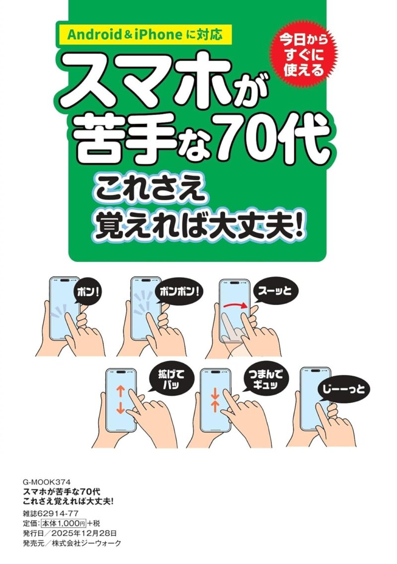 スマホは電話じゃありません、電話付きの小さなパソコンです! スマホはパソコンだと理解すると、驚くほど出来ることの幅が広がりますよ。 大きな文字の日本一簡単なスマホ入門書です。