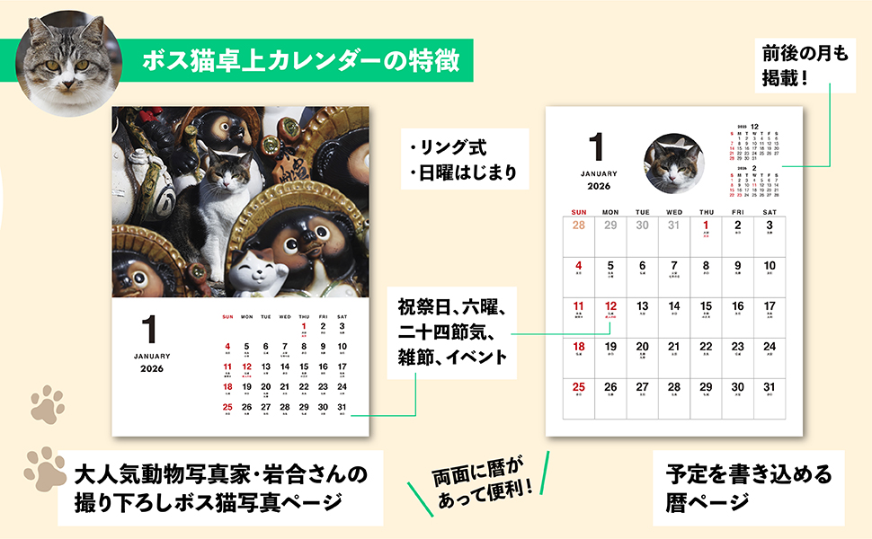 岩合光昭 ボス猫卓上カレンダー2026